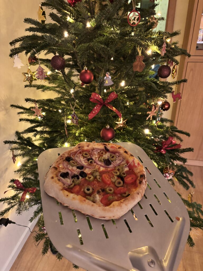 Na jelentem, most már egészen pizzának néz ki a végeredmény. 😉 Szilveszterkor hóesésben sütöttünk pizzát, nagyon hangulatos volt!