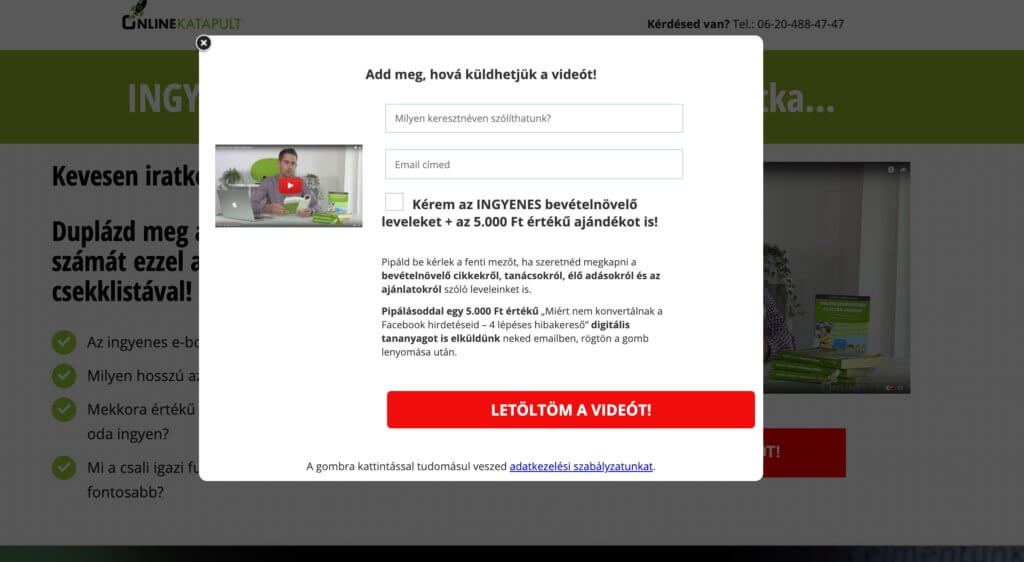 Azért, mert bár számtalan lehetőséged van a weboldaladon arra, hogy felkínáld a látogatóidnak a csalit, a legeredményesebb mégis akkor lehetsz, ha ezt egy kifejezetten erre a célra megalkotott oldalon teszed.