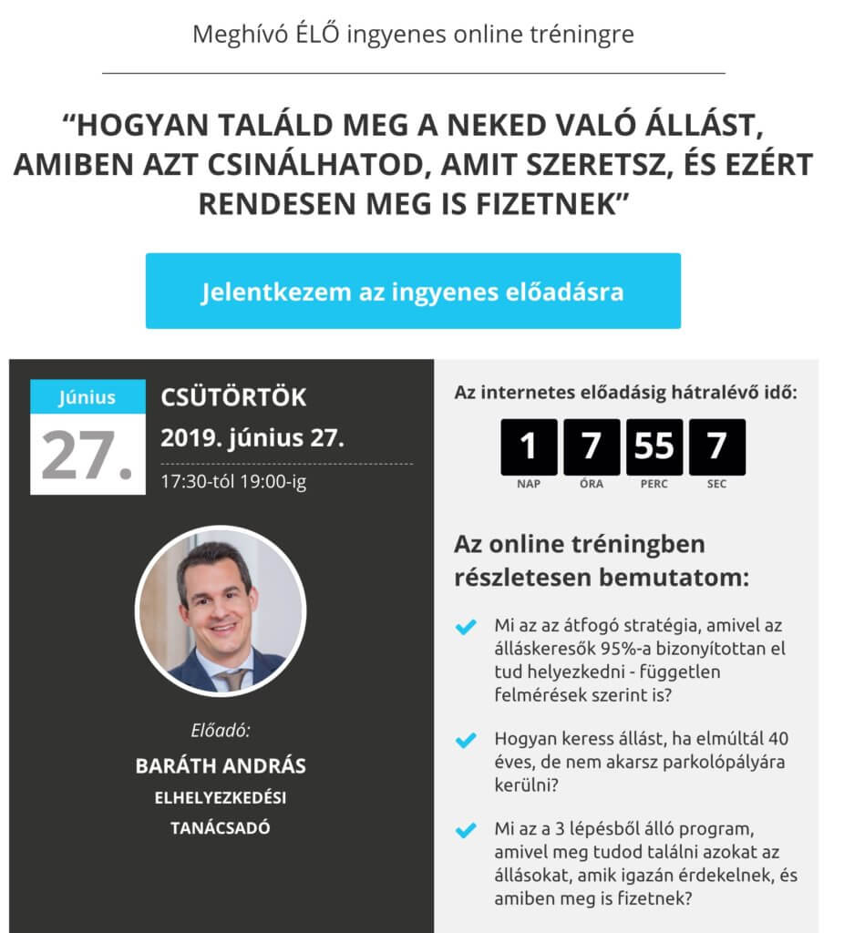 Mire egyértelmű lesz a látogatónak, hogy meg kell adni az e-mail címét, addigra már eldöntötte magában, hogy érdekli a téma. Hiszen csak ekkor kattint, máskülönben nem is tudja, mi vár majd rá.